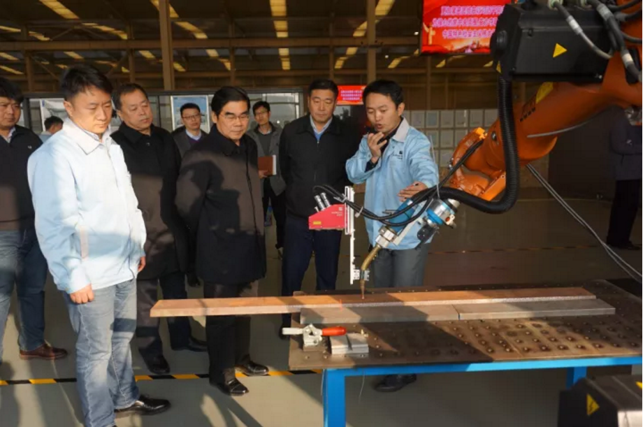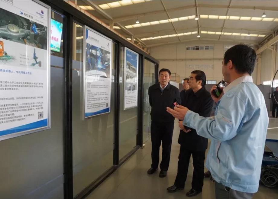 丁市長(zhǎng)一行參觀了英萊科技激光視覺(jué)焊縫跟蹤系統(tǒng)的工作現(xiàn)場(chǎng)。