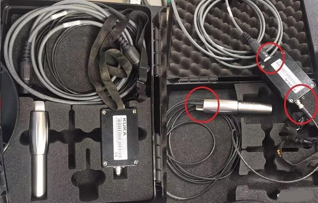 將EMD如下圖所示與機器人進行連接,此時應(yīng)注意不能再手動對機器人進行運動操作,否則可能造成探頭損壞。
