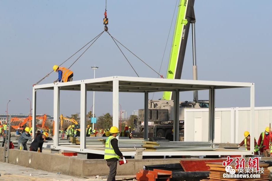 ● 1月29日,大年初五,300多個箱式板房骨架安裝完成,開始同步進(jìn)行機(jī)電管線作業(yè)。