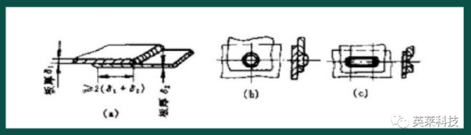 圖(a)為不開坡口的搭接接頭,用于厚度12mm以下的焊件,有時可采用雙面焊接。這類接頭承載能力低,用于不重要結(jié)構(gòu),遇到重疊面積較大時,為保證焊接強(qiáng)度,可分別選用圖(b)、(c)兩種形式。
